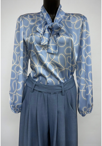 Elegant blus med lätt glans och knyt vid halsen som ger en tidlös och feminin känsla. Tyget har ett fint fall och skapar en stilren siluett – perfekt både till vardag och fest.