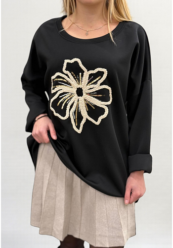 Mjuk och skön tröja med vacker blomapplikation framtill, dekorerad med paljetter och broderi för en subtil 3D-effekt. Ett enkelt sätt att ge vardagslooken det lilla extra.