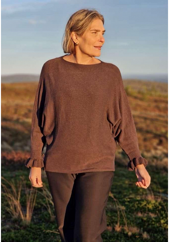 Elegant och feminin stickad tröja med volangdetalj i ärmslutet. Den mjuka viskosmixen ger en följsam passform och hög komfort – ett perfekt val för både vardag och kontor. En uppskattad modell i höstens mest efterfrågade färger.