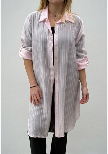 Lätt och luftig skjorta med knappar framtill som kan bäras som klänning, överdel eller öppen kimono. Det skira, mer eller mindre transparenta materialet ger ett somrigt och avslappnat uttryck.