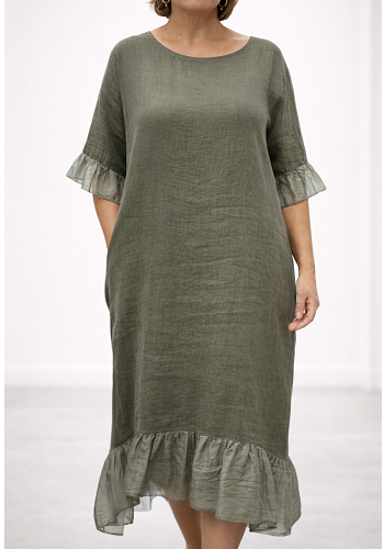 Underbar linneklänning med fint knyt i ryggen och fickor i sidorna.