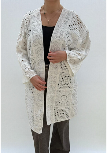 Elegant virkad kofta i mjuk kvalitet som ger en lyxigt bohemisk känsla. Perfekt att bära över en enkel topp eller klänning och fungerar lika fint till vardags som till festligare tillfällen.