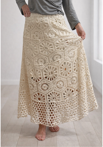 Jättefin virkad kjol med underkjol i lätt klockad modell med ett otroligt vackert fall. En somrig statementkjol som passar perfekt till topp, skjorta eller stickad tröja.