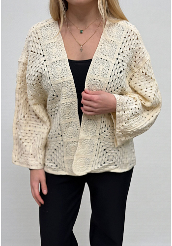 Lätt och luftig virkad kofta i ett klassiskt mönster. Ett perfekt plagg att slänga över axlarna, både till vardags och till festligare tillfällen.