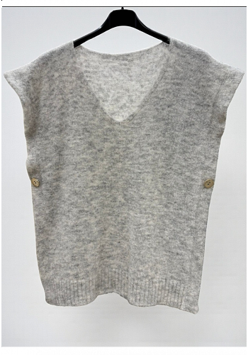 Mysig stickad väst med dekorativa knappdetaljer i sidorna som ger ett modernt och genomtänkt uttryck. Perfekt som lager-på-lager-plagg över skjorta, blus eller klänning. En lättburen favorit för vardag, kontor och vårens kyligare dagar.